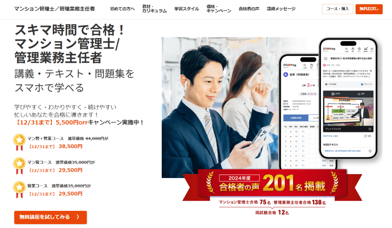 スタディングのマンション管理士講座は毎年多くの合格者を輩出しています。